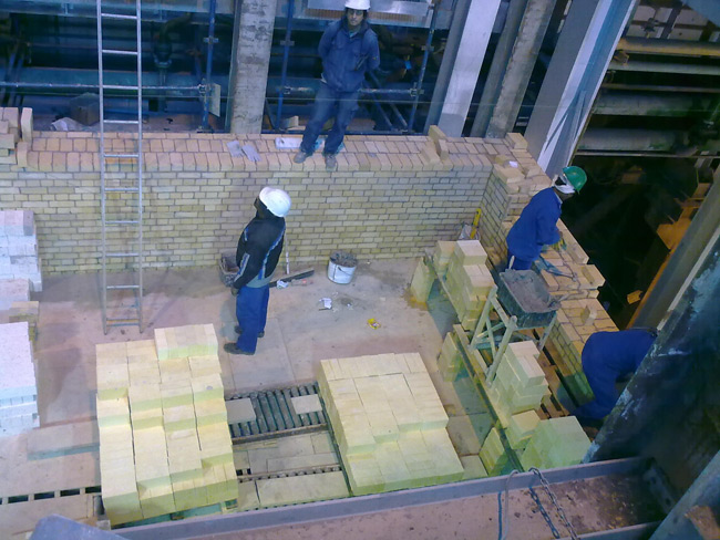 | Division Wall Damage | Rebuild with bonded AZS Shapes |