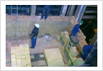 ویبره مخصوص و دمنده های هوا اماده انجام عملیات پر نمودن کوره شیشه.