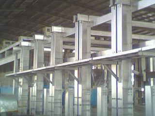 ![]() | نصب ویبره در زیر هاپر های تغذیه برای روانکاری کار انتقال خرده شیشه به کوره. |