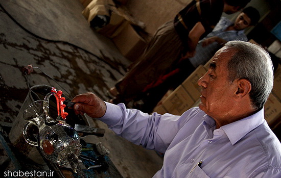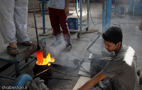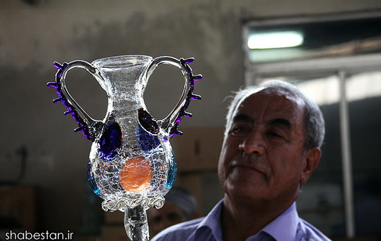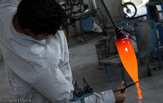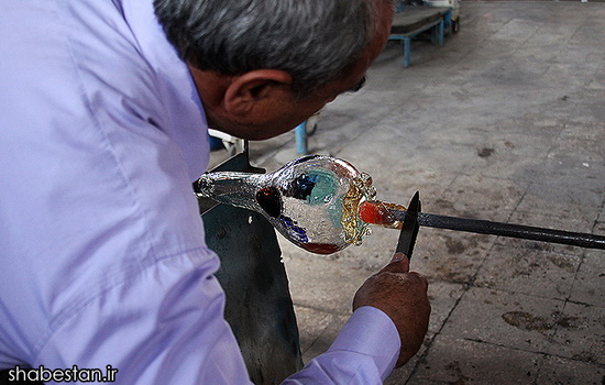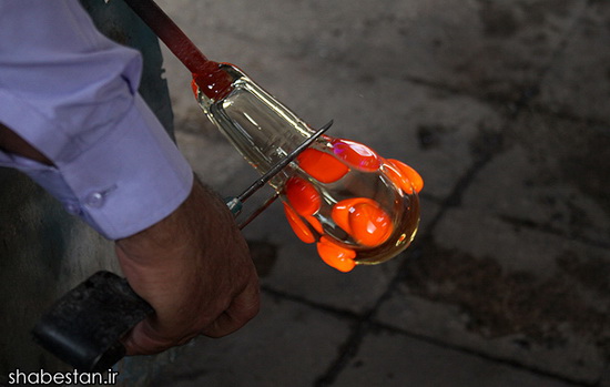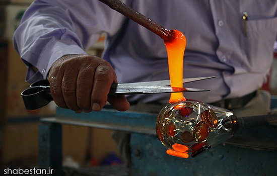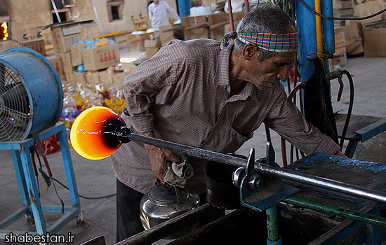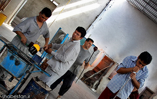 اینجا کارگران شیشه گر علیرغم سختی کار در فضای کوره و آتش، محصولات متنوعی را هنرمندانه می سازند